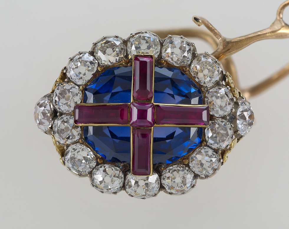 The Sovereign's Ring, also known as the wedding ring of England, is a gold ring with a sapphire centrepiece and a ruby cross set in diamonds. Since King Edward VII, every monarch has worn it during their coronation as a symbol of their commitment to their duties and responsibilities to the nation they rule.